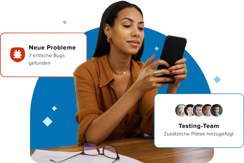 - Die weltweit größte Community aus QA-Experten, UX-Forschern, Zahlungs- und Barrierefreiheitsspezialisten, Automatisierungsentwicklern, SDET, Ingenieuren und weiteren geschulten Testern