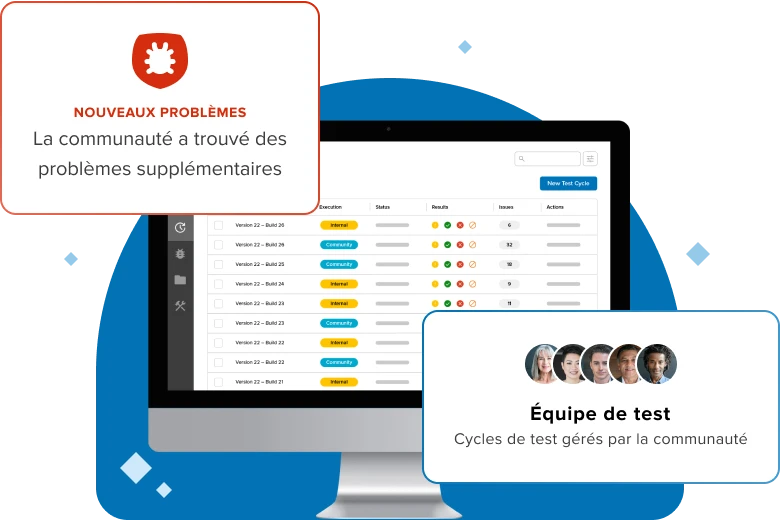 Applause TCM prend en charge la gestion des tests réalisés par l'équipe interne et par la communauté Applause, en optimisant la capacité à planifier et à coordonner l'exécution des tests au travers de plusieurs builds et applications.